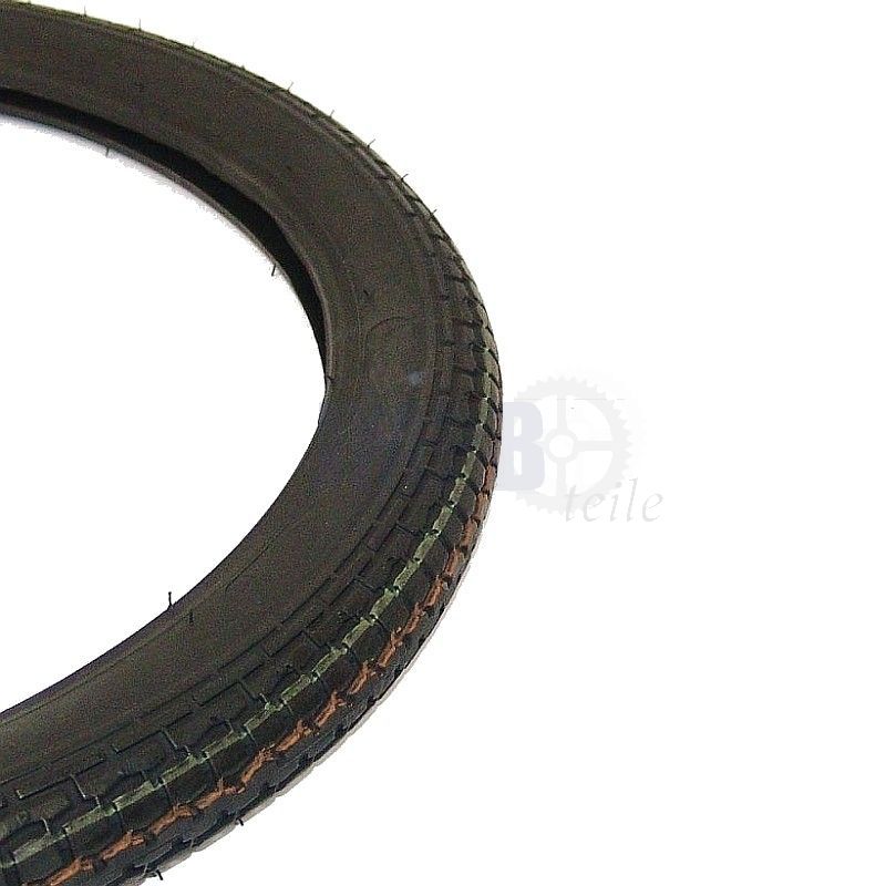 Einige alte Reifen, die von einem alten Moped kommen, haben noch eine alte Art der Größenbestimmung.